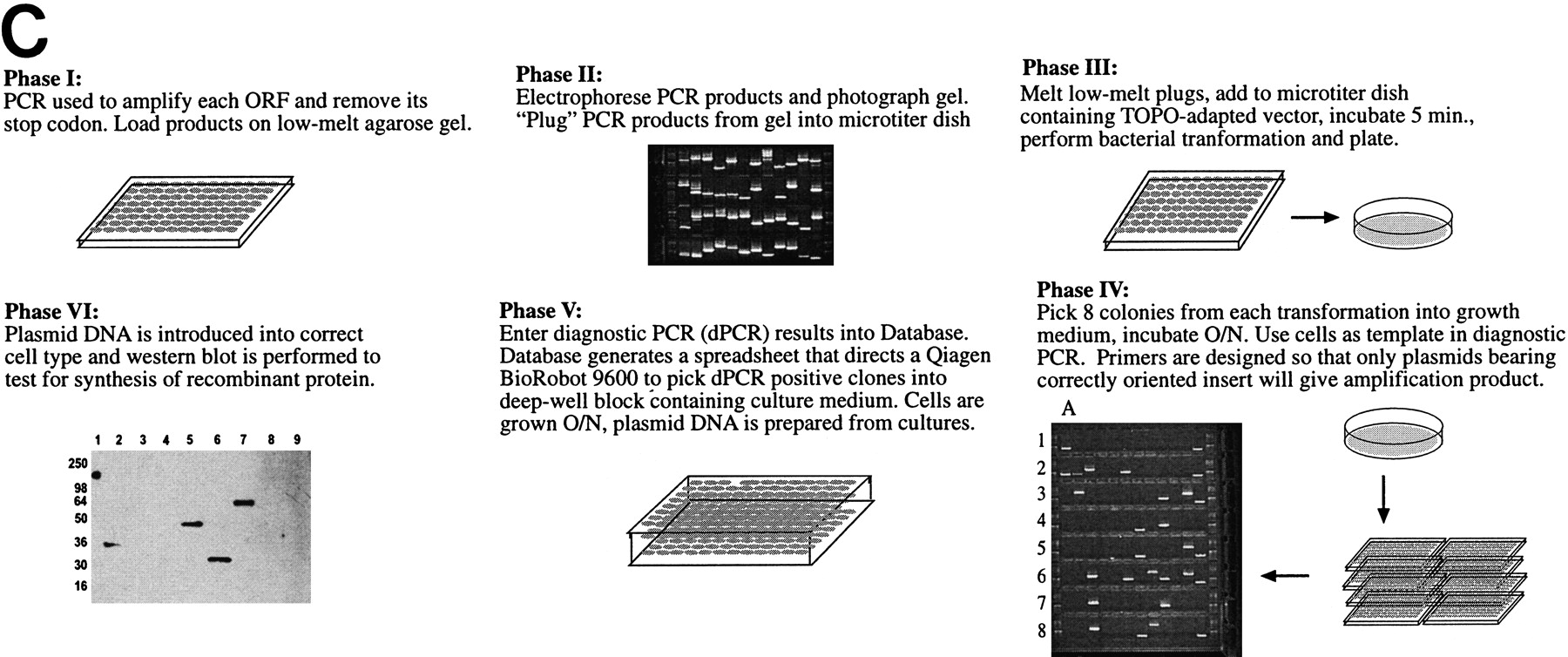 (A) Vector pYES2/GS for expression in yeast cells includes theGAL1 promoter for inducible expression in appropriate S. cerevisiae strains; the 2 μ origin of replication for maintenance of high copy number and improved expression; theURA3 gene for stable selection of transformants in ura3 S. cerevisiae strains. (B) Vector pcDNA3.1/GS for expression in mammalian cells includes the CMV promoter and enhancer sequences for high-level transient or stable expression; and the multipurpose Zeocin resistance antibiotic for selection of bacterial transformants and of stably transfected mammalian cells. Both vectors also include the V5 epitope tag after the insert to allow detection of proteins for which antibodies are not available, a carboxy-terminal polyhistidine tag (His)6 to allow metal-affinity protein purification, and the T7 promoter to enable in vitro transcription and translation of the target gene. (C) Schematic representation of the topoisomerase I-mediated cloning process. Phases are described in the text.