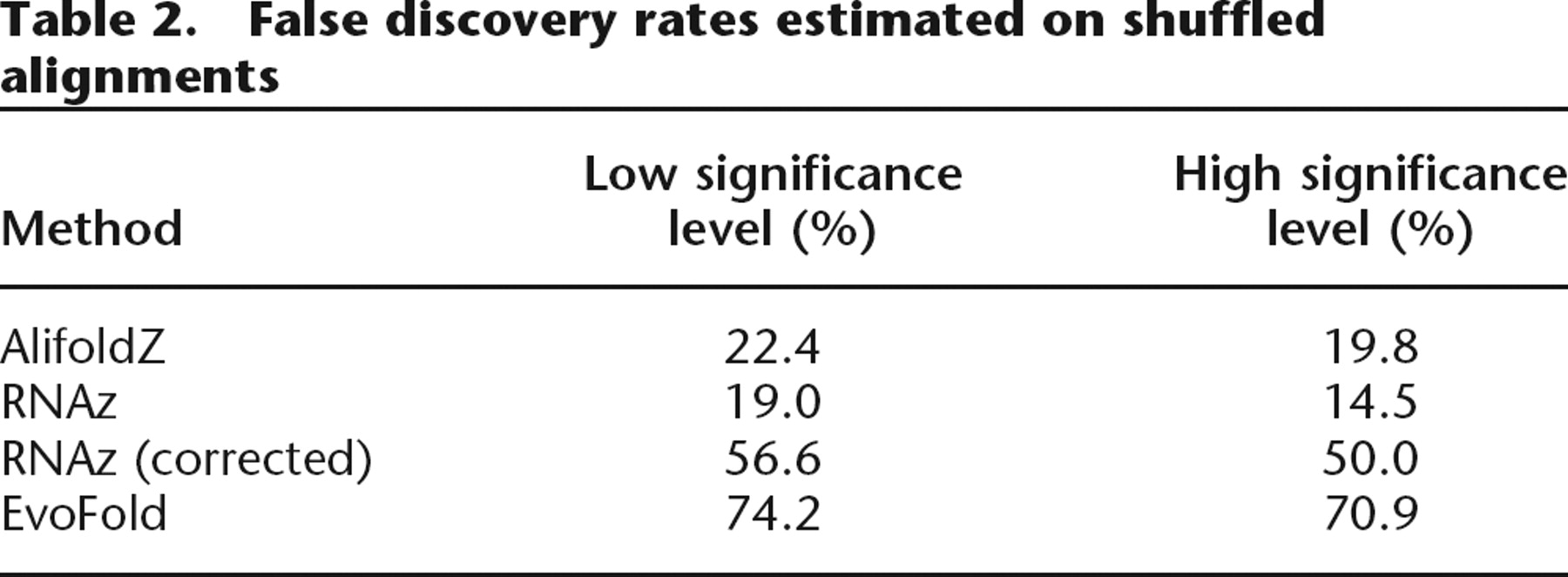 False discovery rates estimated on shuffled alignments