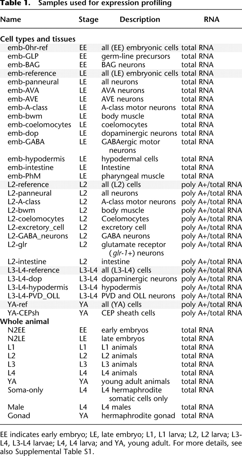 A spatial and temporal map of C. elegans gene expression