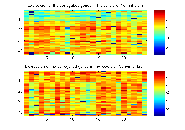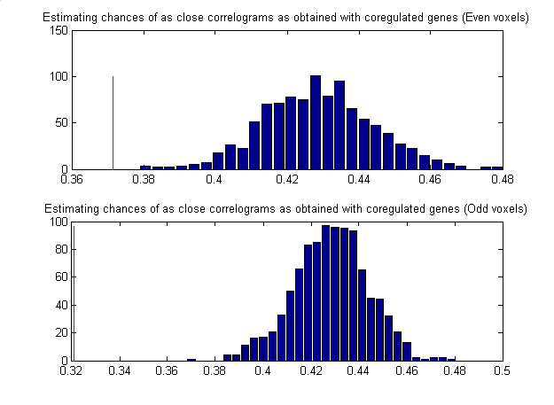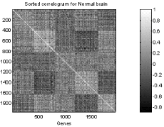 Figure 1 b) : Correlograms of the coregulated genes for the two brains