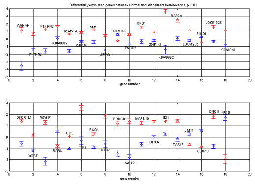 1977x24 normalized log-ratio expression levels for 1977 genes in the 24 voxels of the AD brain |