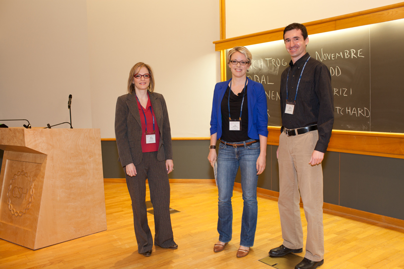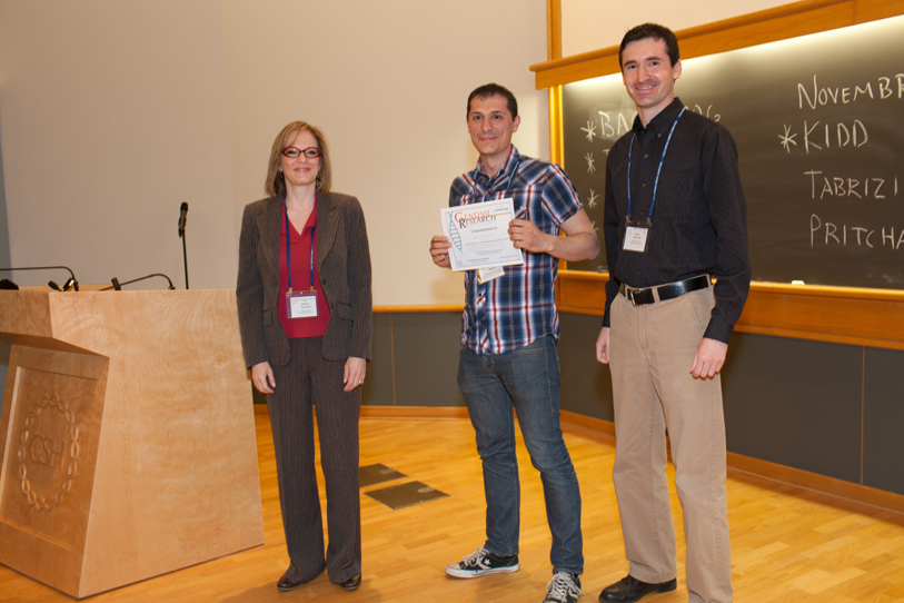 Dr. David Thybert accepts the Grand Prize at “The Biology of Genomes” meeting. With Dr. Hillary Sussman, Executive Editor of Genome Research (L) and Dr. Robert Majovski, Assistant Editor of Genome Research.